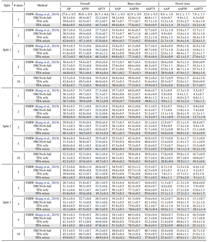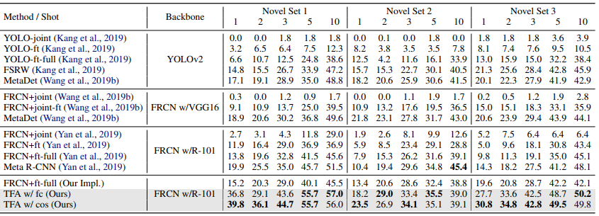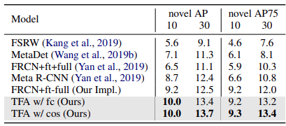 본 모델은 타 논문에서 [TFA] 라고 불리는 모델이다.