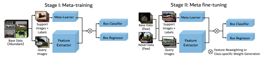 feature re-weighting이나 weight generation을 통해 novel class에 모델을 일반화 되도록 돕는다.