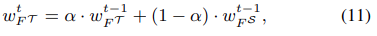teacher의 가중치는 다음과 같이 업데이트 된다.