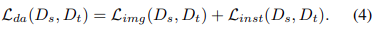 이후 RPN 출력 단(instance)에서 한번더 domain classifier을 적용한다.