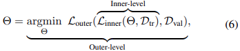 Meta Training 셋을 가지고 얻은 loss 및 파라미터를 Inner-level으로 표시하였다.