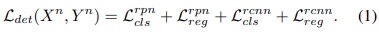 먼저 Faster-RCNN을 사용하였으므로 detection loss는 다음과 같다.