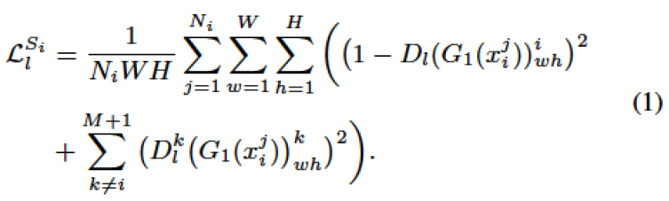 discriminator는 domain을 구분하는 용도인데, M+1개의 domain을 구분하도록 학습시킨다.