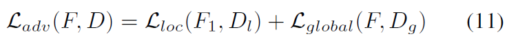 여기서 위의 global, local loss는 모두 adversarial loss역할을 한다.