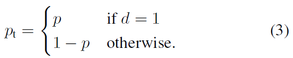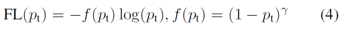 modulating factor f(pt) cross-entropy loss에 추가한것이 다음과 같은 Focal Loss이다.
